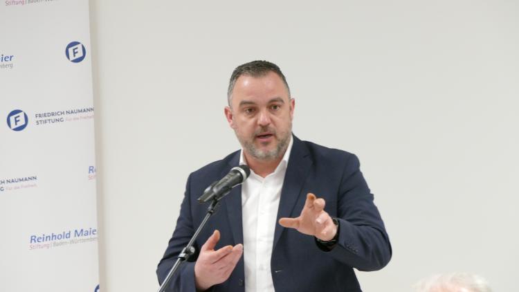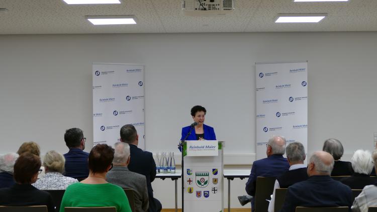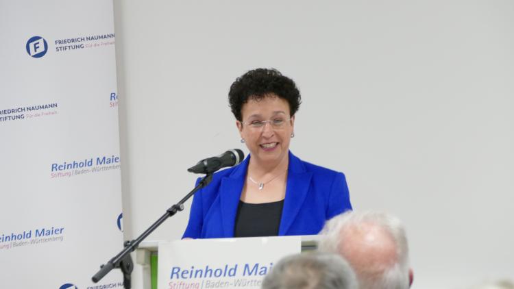 Birgit Homburger, Mitglied des Verwaltungsrates der Reinhold-Maier-Stiftung, sagte einführend in ihrer Begrüßung, dass angesichts vielfacher Krisen die Graswurzeldemokratie im Sinne Reinhold Maiers von besonderer Bedeutung für den gesellschaftlichen Zusammenhalt und die Demokratie sei. Für eine wehrhafte Demokratie, so Homburger, bildeten die Verantwortungsträgerinnen und –träger auf kommunaler Ebene das entsprechende Fundament.