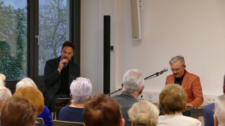 Musikalisch untermalt wurde die Veranstaltung von den Musikern Thomas Sausen (Gesang) und Sebastian Schnitzer (Piano).