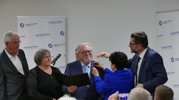 Für sein kommunalpolitisches Engagement wurde Werner Waimer mit der Reinhold-Maier-Nadel ausgezeichnet.