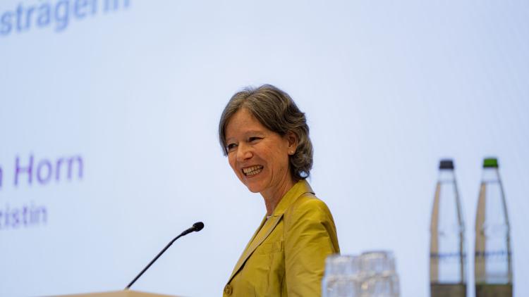 Fezer hob hervor, Horns Arbeit reiche über tagespolitische Diagnosen hinaus: Sie verbinde wirtschaftspolitische Analysen mit grundlegenden Struktur- und Wertfragen und bringe ihre wissenschaftlichen Erkenntnisse aktiv in die gesellschaftliche Debatte ein. In Journalismus und Publizistik, in Forschung und Lehre sowie in akademischen und politischen Netzwerken mache sie ökonomisches Denken verständlich, kritisch und orientierend einer breiten Öffentlichkeit zugänglich. Mit analytischer Tiefe, klarer Sprache und gesellschaftlichem Weitblick trage sie dazu bei, das Bewusstsein für die Grundprinzipien einer funktionierenden Marktwirtschaft und einer freiheitlichen Gesellschaftsordnung wachzuhalten.