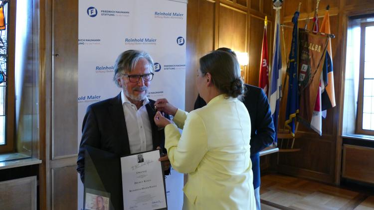 Für sein kommunalpolitisches Engagement wurde Helmut Kurtz in Böblingen mit der Reinhold-Maier-Nadel ausgezeichnet.