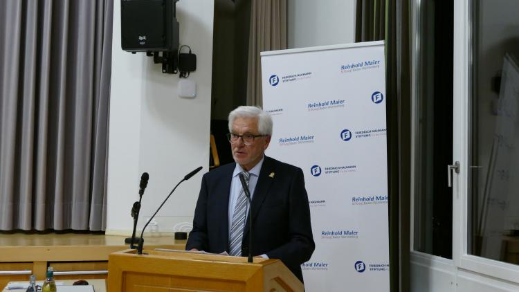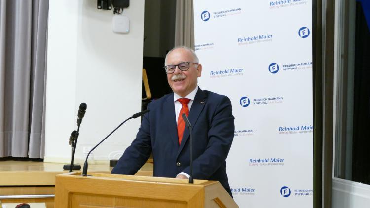 Diesen Aussagen schloss sich Irene Schuster, Mitglied des Verwaltungsrats der Reinhold-Maier-Stiftung, an und hob erneut hervor, wie Schmelzle in besonderer Weise jene liberalen Grundüberzeugungen, die Freiheit stets mit Verantwortung verbinden, verkörpere.