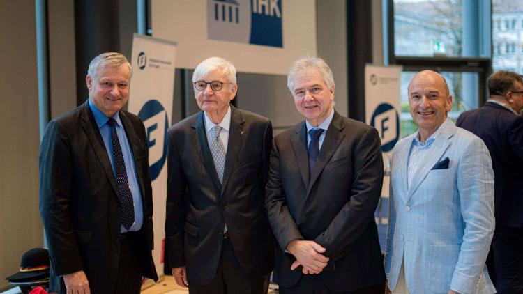 v.l.n.r.: Dr. Hans-Ulrich Rülke MdL, Prof. Dr. Jürgen Morlok, Prof. Dr. Ludwig Theodor Heuss, Christoph Daniel Maier