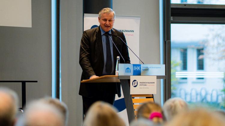 Einen Ehrentag für einen besonders verdienten Liberalen aus dem deutschen Südwesten richteten die liberalen Stiftungen in Baden-Württemberg in Karlsruhe am 8. November aus: Mehr als 100 Gäste fanden sich ein, um dem früheren Spitzenmann und heutigen Ehrenvorsitzenden der Freien Demokraten in Baden-Württemberg sowie Ehrenvorsitzenden des Kuratoriums der Friedrich-Naumann-Stiftung für die Freiheit zu seinem 80. Geburtstag Anerkennung und Dankbarkeit in den festlichen Räumlichkeiten der IHK im Herzen Karlsruhes zu erweisen. Passend zu diesem Anlass richteten die liberalen Stiftungen dazu ein hochkarätig besetztes Symposium mit dem Titel „Tradition und Zukunft – Zur Zukunft der liberalen Demokratie“ aus.
