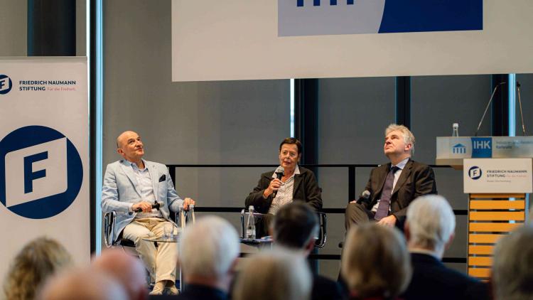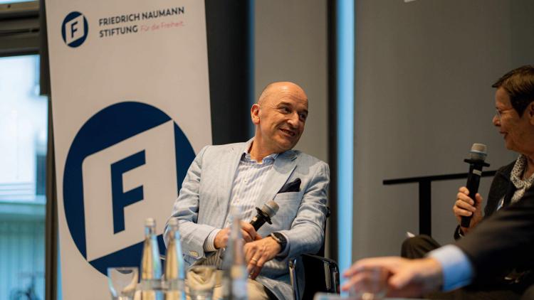 Er dankte den Rednern und der Moderatorin ausführlich und ergriff die Gelegenheit, um für „seine“ liberale Sache mit entschiedenen Worten Partei zu ergreifen, nicht ohne zuvor noch an frühere existenzielle Zeiten für die Liberalen in Deutschland im Laufe seiner politischen Laufbahn zu erinnern. Denn der Liberalismus verspreche eben die Freiheit, aber bringe auch die Last, damit umzugehen. Der Einsatz für die Freiheit lege als Grundlage Wert auf eine logische Erkenntnis: „Wer Zukunft gestalten will, der muss eine Idee umsetzen, die so simpel wie kernliberal ist: Es muss nicht zuerst gerechter verteilt werden, sondern mehr geschaffen werden“, so Morlok. Gleichzeitig warnte auch er ausdrücklich davor, sich heute angesichts von Wahlniederlagen in der FDP als liberaler Partei in Richtungsdiskussionen zu ergehen, denn: „was uns Liberale für immer verbindet, ist das umfassende Verständnis von Liberalismus als der Freiheitsidee, die alle Politikbereiche durchdringt“.