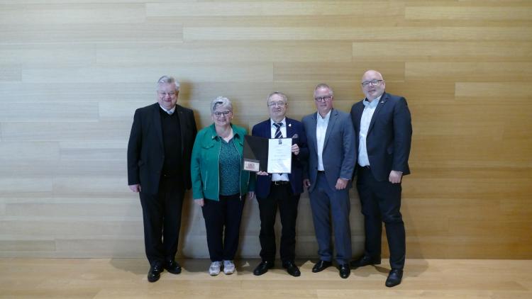In Pfedelbach wurde Michael Schenk sein jahrzehntelanges kommunalpolitisches Engagement mit der Reinhold‑Maier‑Nadel ausgezeichnet.